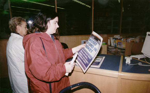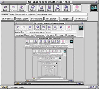 [At the time of production, Netscape Navigator was the browser of choice and the artwork image filled a typiccal screen . Also, Microsoft’s ‘Where do you want to go today?’ ad campaign was running on its homepage.]