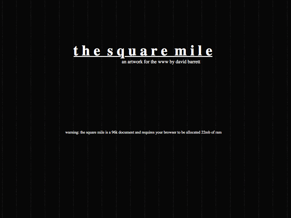 One hundred webpages loading as fast as possible, the pulse-like speed and regularity of the loading rhythm being a display of the computer’s connection to the remote server.